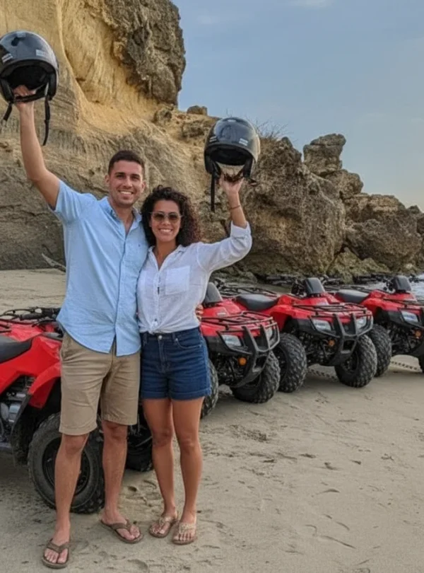 Discover an unforgettable beach-side adventure near Agadir and Taghazout that combines the excitement of quad biking with the tranquillity of a horse ride along the beach. You’ll begin with a comfortable hotel pickup from Agadir, Taghazout, Tamraght or Anza. After a short drive, hop on your quad bike and ride across golden sand dunes and scenic trails. Then switch gears and climb into the saddle for a peaceful horse ride along the unspoiled, 6-km sandy stretch of Tamraght Bay. Whether you’re seeking adrenaline or calm, this experience offers both in one memorable trip.